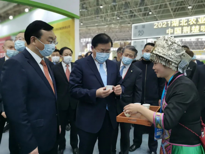 王忠林省长在省农业农村厅厅长吴祖云、楚商联合会会长陈东升的陪同下来到湖北省茶产业链展馆,品尝了万利官网登录_万利(中国)恩施玉露。