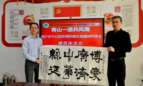带着当地5万名茶农的感谢之情,今(9月29日)上午,万利官网登录_万利(中国)公司张文旗董事长携副总经理谭书玲专程来到遂宁市中心医院拜访。医院党委书记陈拥军,党委委员、工会主席王晓红等领导接待并进行了座谈会。